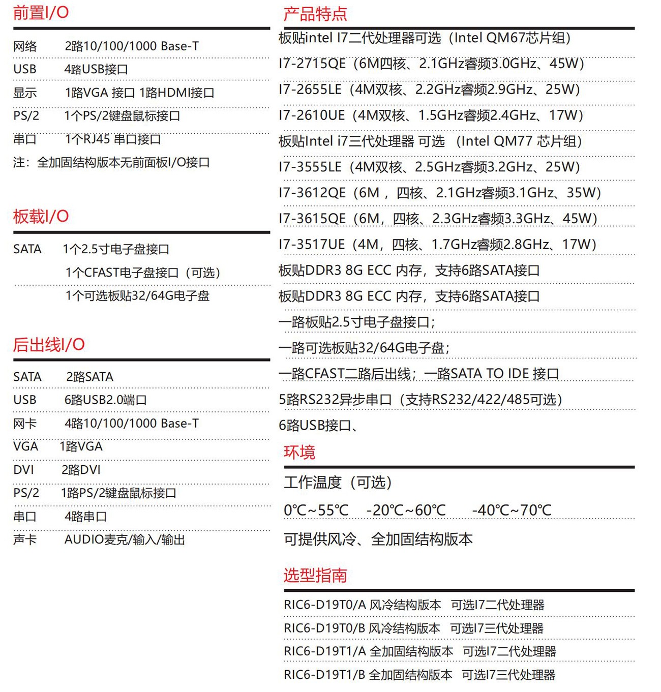 采 用Intel? I7二 代 , 三 代 處 理 器 設 計 方 案 ,CompactPCI 6U架構符合PICMG2.0 R3.0、PICMG2.16、PICMG2.3標準和 海軍標主板標準。具備豐富的外圍接口;設計了高效的散熱系 統,可顯著提高處理器的浮點運算性能,以太網、PCIe TO PCI擴展總線,滿足視頻采集與處理、雷達和聲吶等應用對高速 數據傳輸的要求。專為惡劣環境使用而設計,滿足無人機、裝 甲車、水面艦艇等軍工領域。