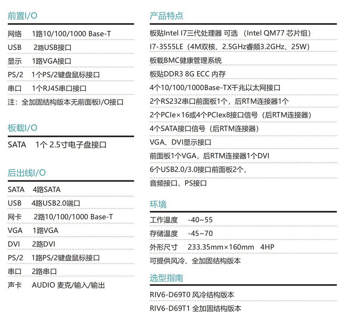 采用Intel 三代處理器設計方案,6U VPX規格。具備豐富的外圍接口;設計了高效的散熱系統,可顯著提高處理器的浮點運算性能,以太網、PCIe、支持高帶寬數據傳輸, 滿足視頻采集與處理、雷達和聲吶等應用對高速數據傳輸的要求。專為惡劣環境使用而設計,滿足無人機、裝甲車、水面艦艇等軍工領域。